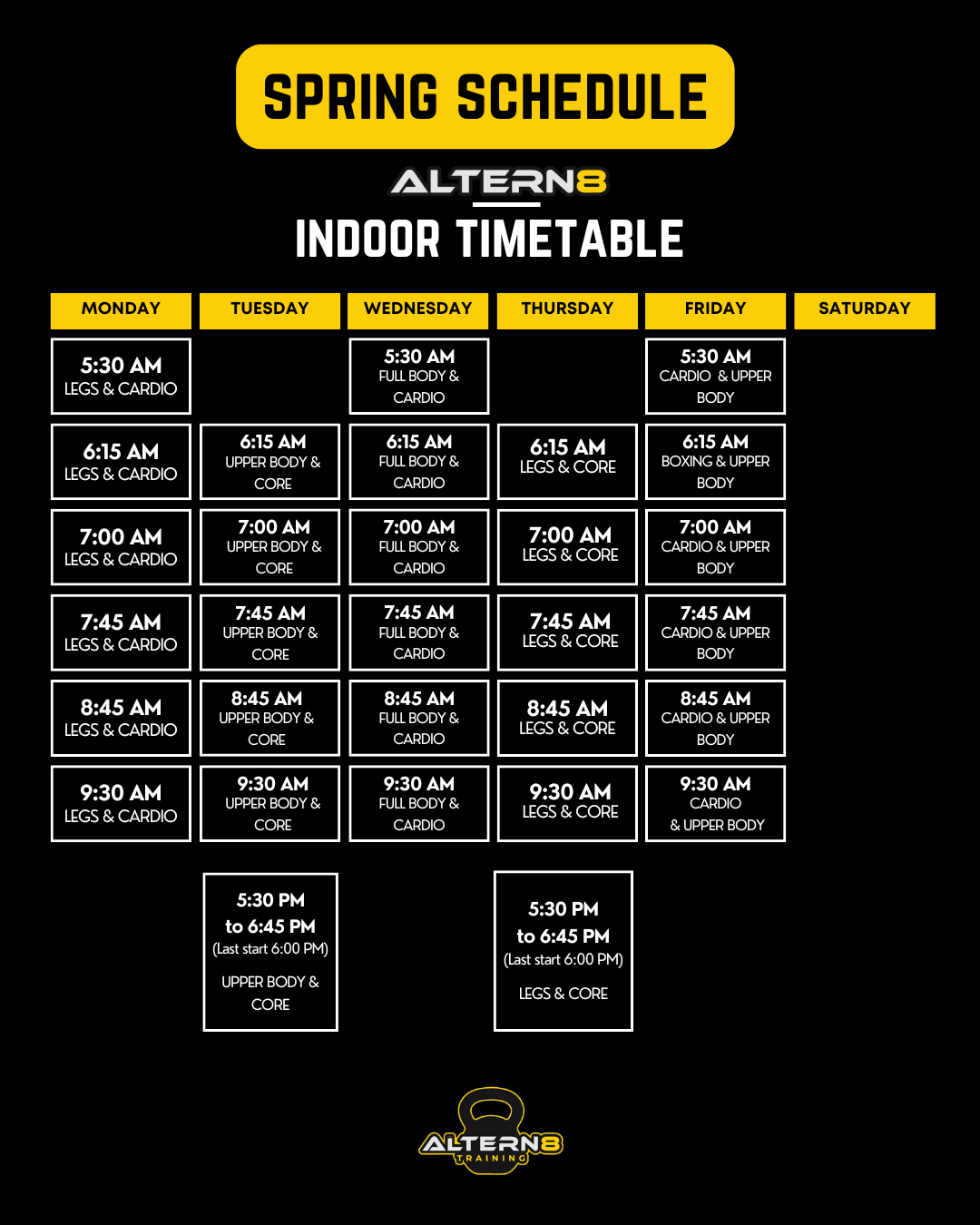 Engage in AMRAP workouts that push your limits and make the most of our thoughtfully crafted gym class timetable. Your journey to a healthier you begins with our versatile gym class schedule.